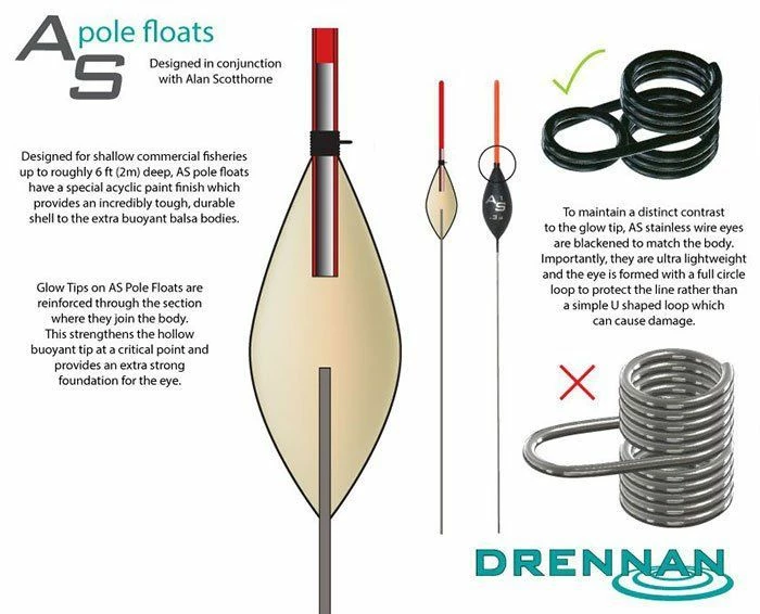 - Designed and developed with 5 times World Champion Alan Scotthorne, AS3’s & 4’s are two new families of pole floats featuring hollow glow tips, super strong surface finish and improved wire eyes.