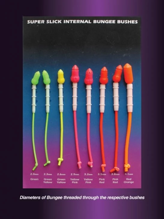 - These 100% pure white P.T.F.E internals are extra slick and provide an elongated slippery tube section right at the pole tip. This extra working length reduces bungee wear and smooths both stretch and recovery. Available in 8 sizes and there are x2 per packet.
